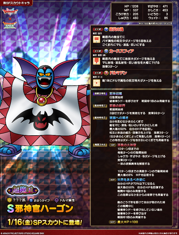 2026年1月16日(金)より登場する「極DQI&II闇の覇者と邪神官SPスカウト」にて、新キャラクター「闇の覇者りゅうおう」と「邪神官ハーゴン」が登場いたします。